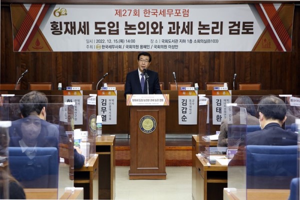 The KACPTA(President Won Kyeong Hei) held the 27th Korea Taxation Forum under the theme of Discussion of the Introduction of Windfall tax & reviewing the logic of taxation on the 15th of December at the National Assembly Library.